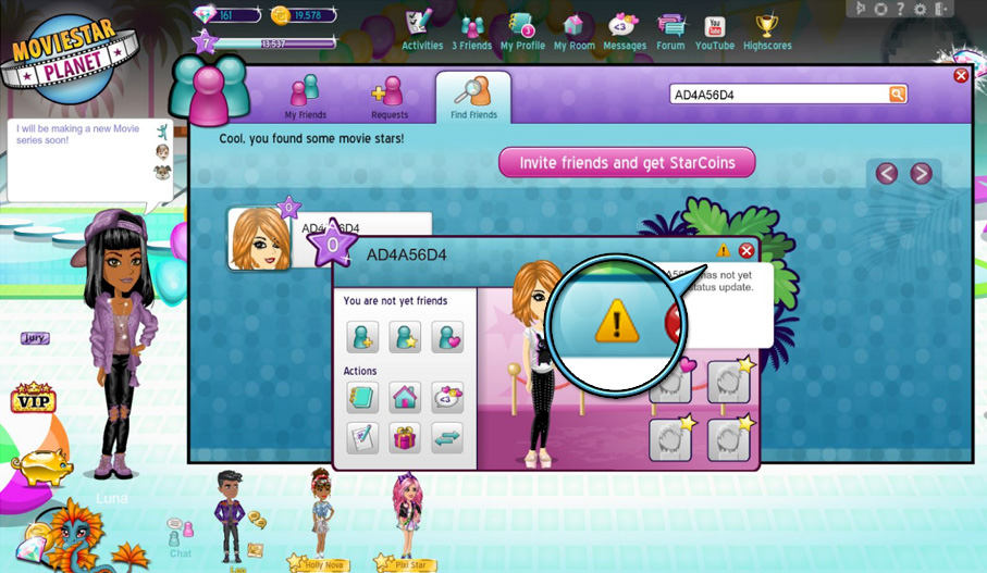MovieStarPlanet hat ein leicht zu bedienendes Melde-System: Es bedarf nur ein paar Klicks. Wir ermutigen jeden schlechtes Verhalten zu melden.
