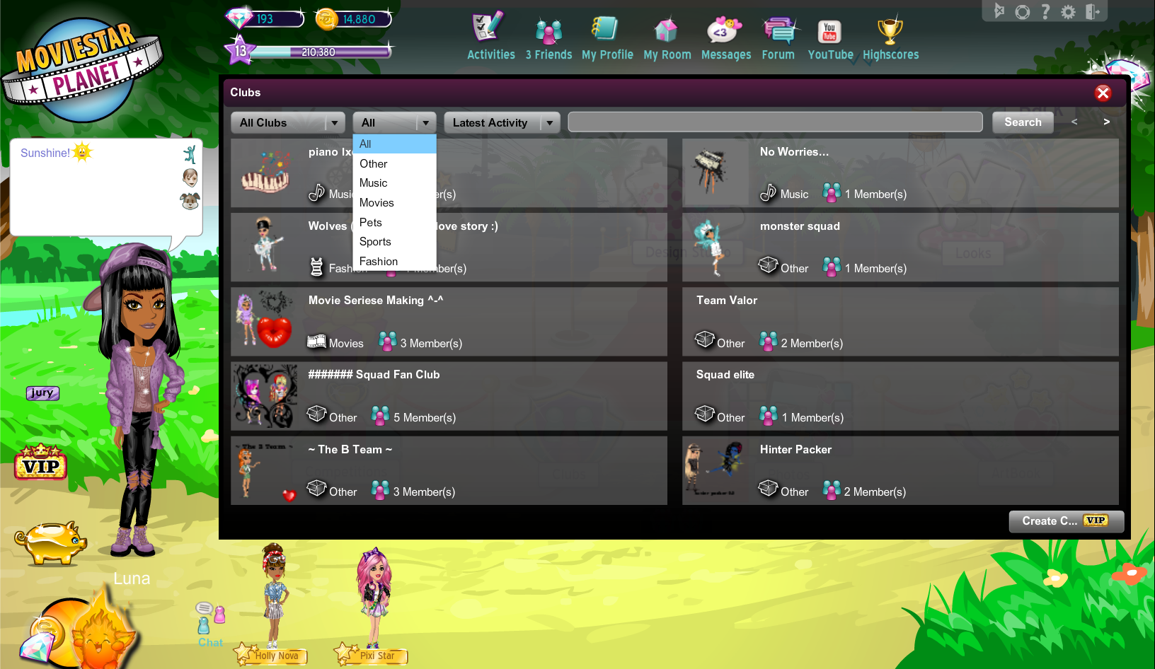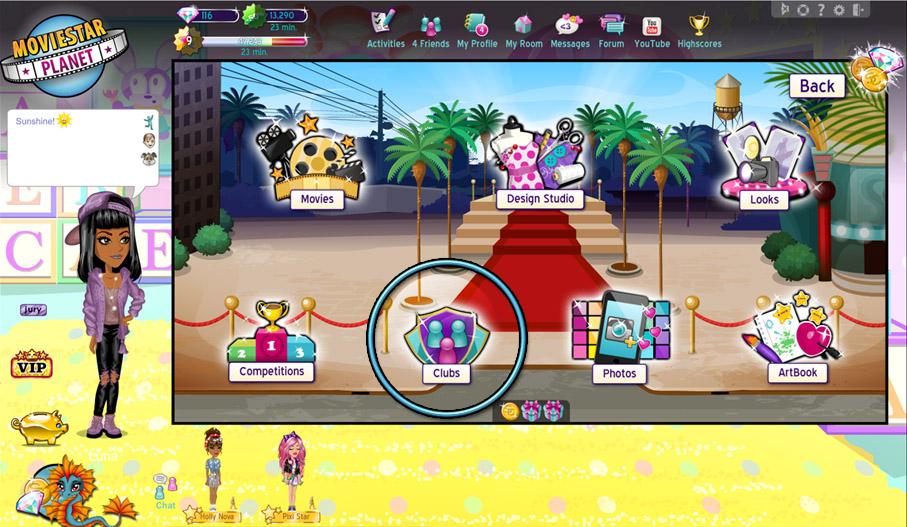 Du kannst ganz einfach die Menüs benutzen, um den richtigen Club für dich zu finden (Musik, Filme, Tiere), ganz nach deinen Interessen.