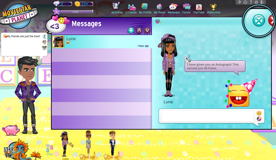 MovieStarPlanet is all about making new friends and connecting with existing friends. Chatting with your friends is easy.