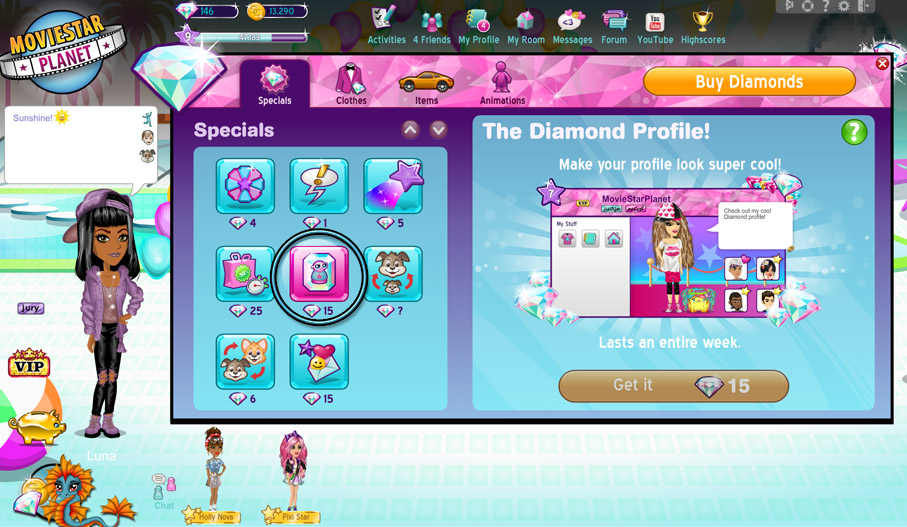 ¿Se está preguntando cómo gastar sus diamantes de una manera fresca? ¿Por qué no gastar sus diamantes en un perfil de diamantes? Lo encontrará en la tienda de diamantes en el área de compras . Cuesta 15 diamantes, dura una semana entera y parece increíble: