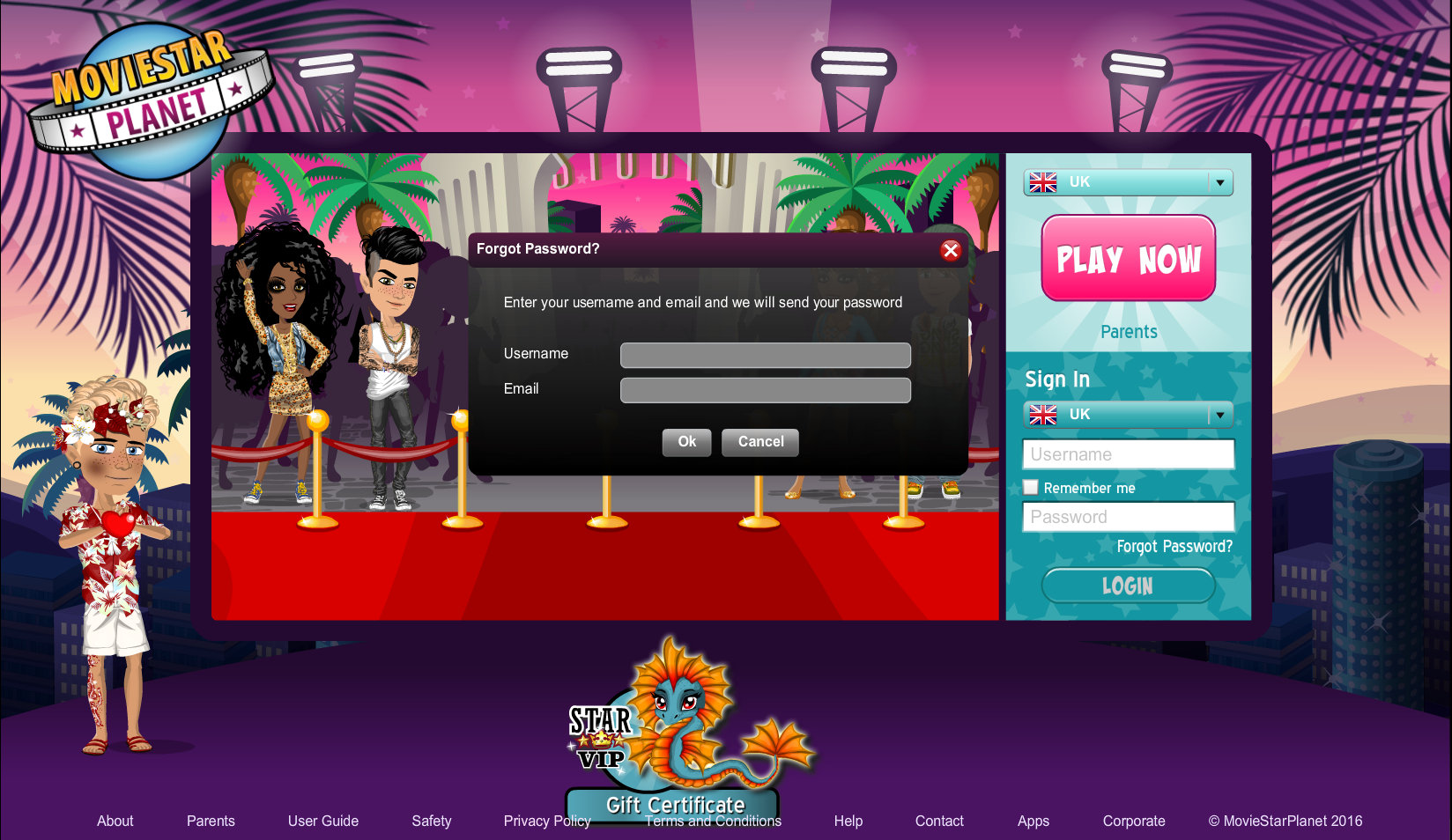 Have you already connected your email to your MovieStarPlanet account? If so, you can get your password back by clicking "Forgot Password?" on the front page when playing on a computer. After doing that, don't forget to check your inbox! An email from MovieStarPlanet will be waiting for you there, and you will be able to choose a new password for your movie star.