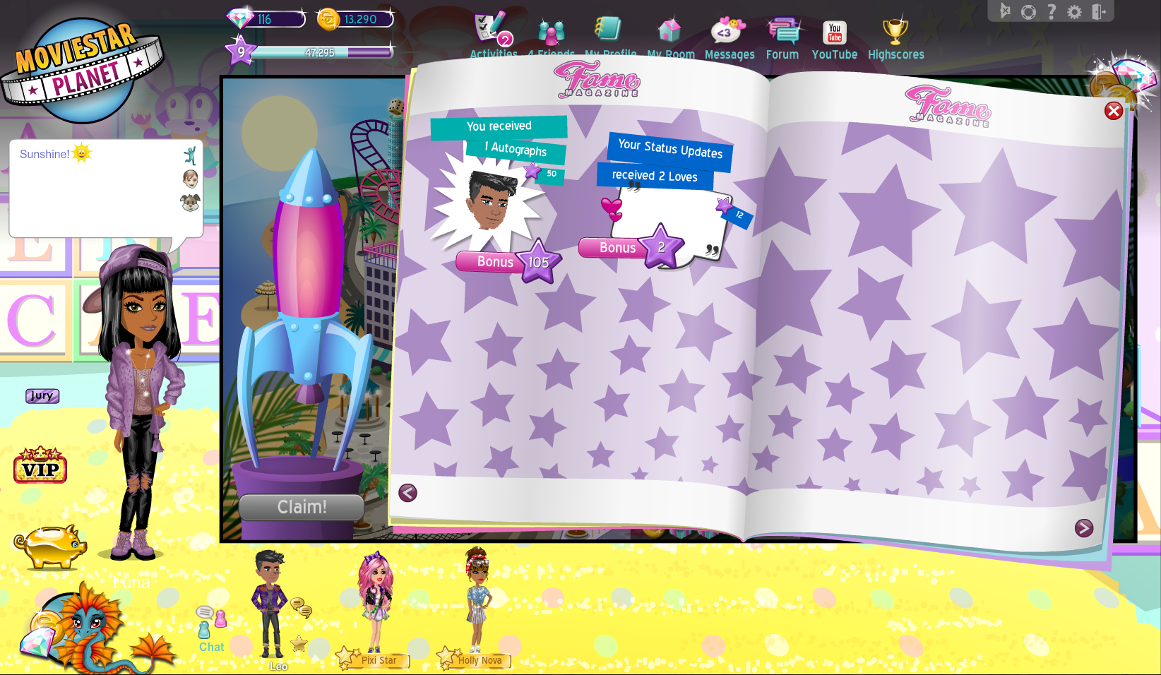 ¡Pero hay más! Los bonos de fama adicionales al lado de cada pequeña ventana es tu bonificación Fama por abrir la Revista Fama.