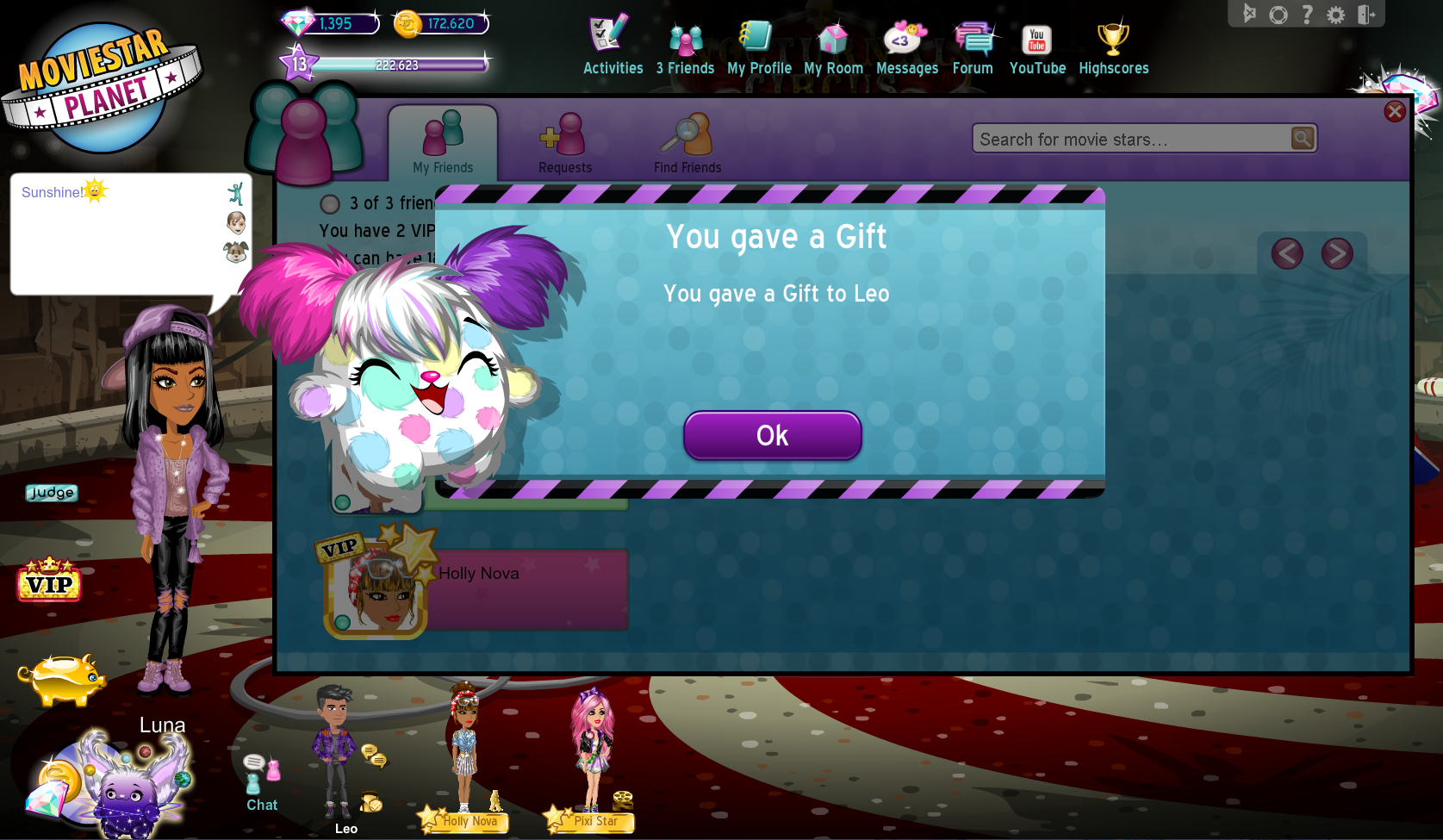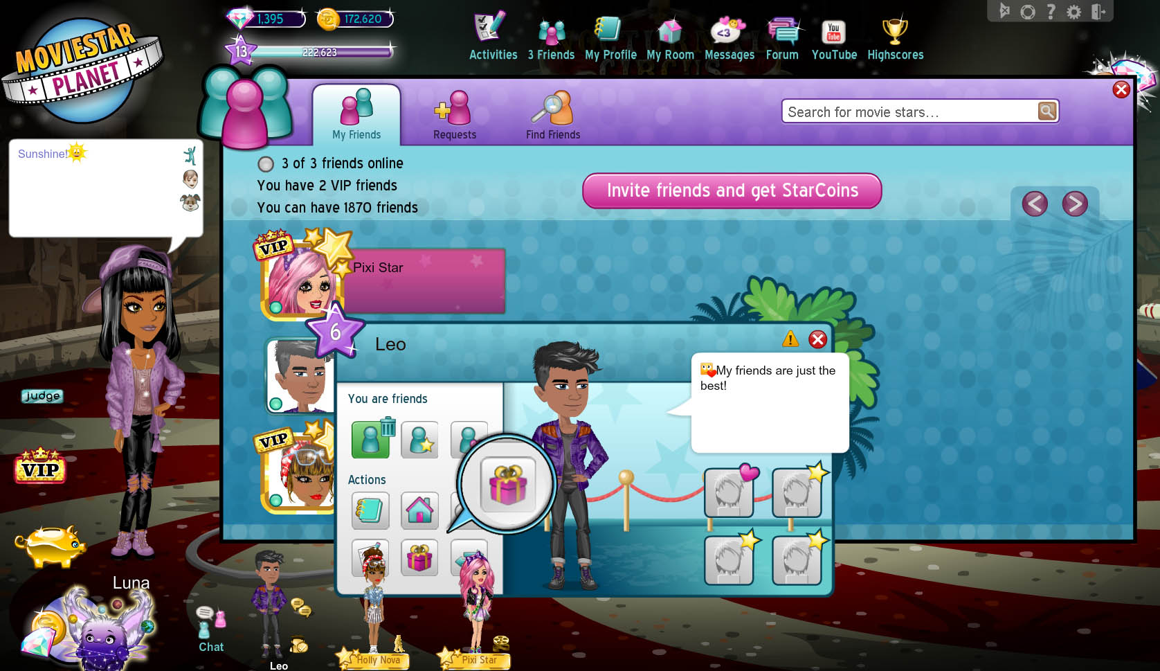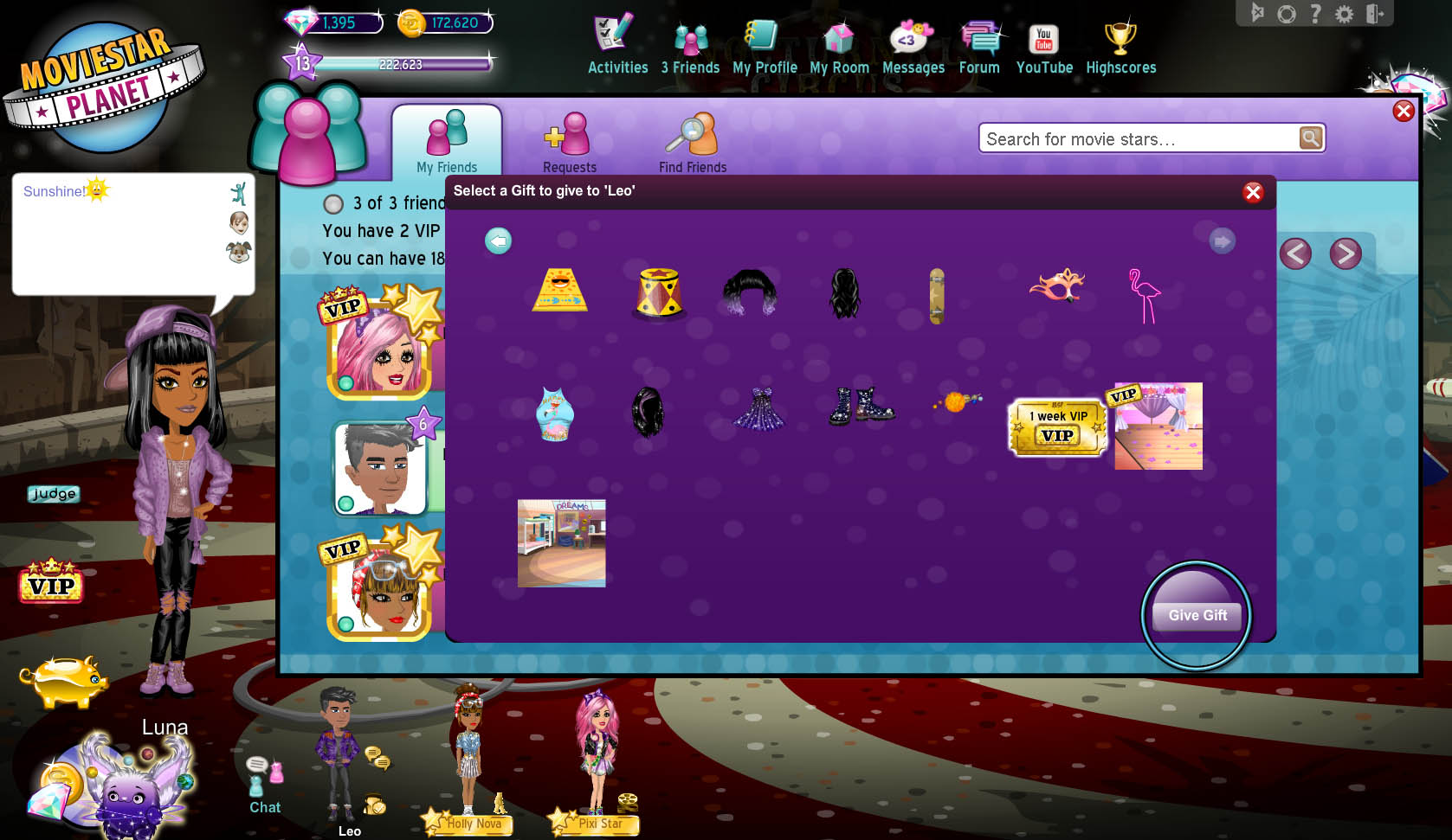 No tienes que ser amigo de la MovieStar que deseas darle un regalo VIP. Puedes dar el regalo dondequiera en el juego haciendo clic sobre el usuario. Si eres amigo del MovieStar, también puedes hacerlo desde tu lista de amigos.