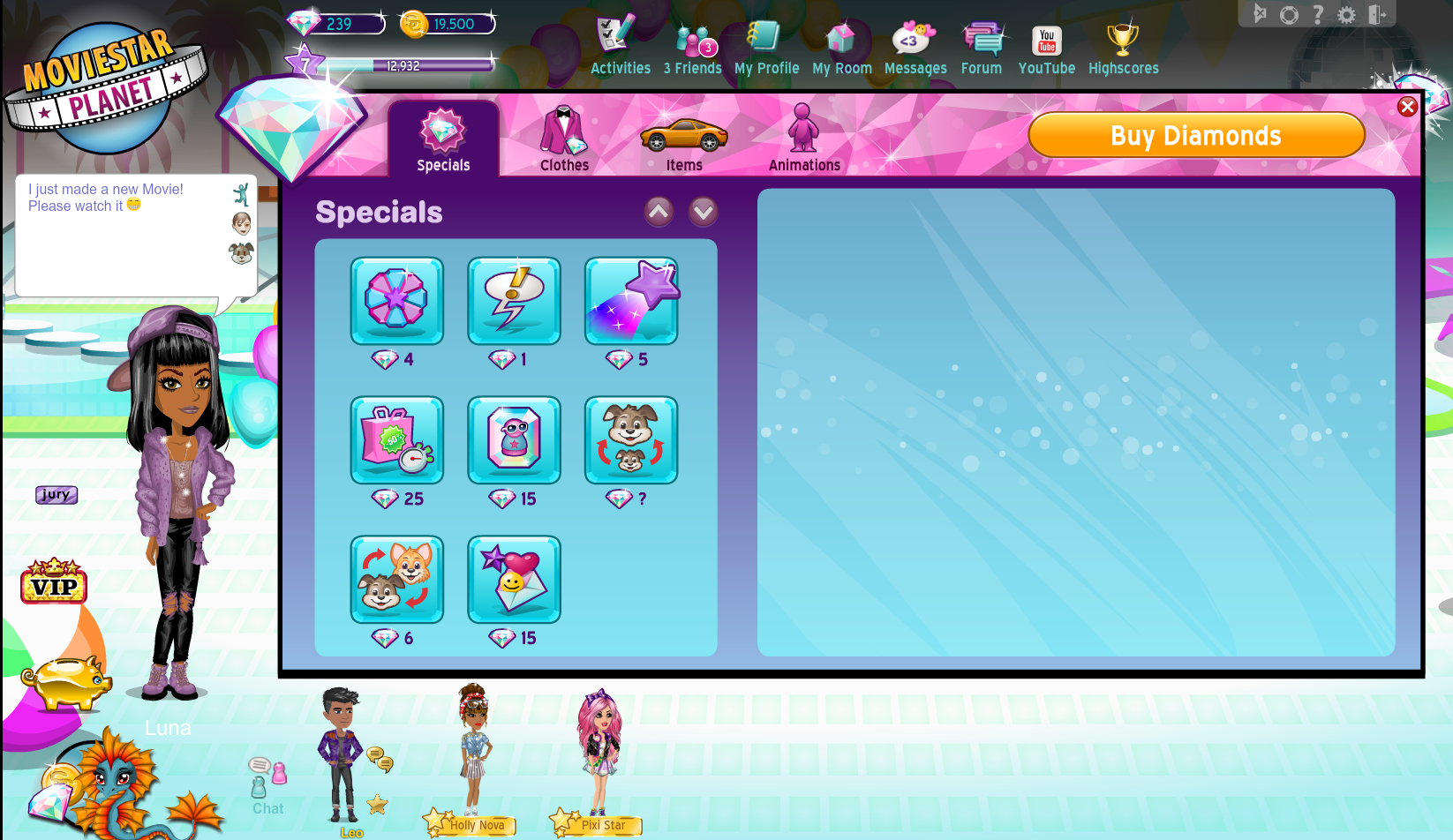 Timanttikauppa on hyvin erityinen paikka MovieStarPlanetissa. Täällä voit käyttää omat Timanttisi! Pääset Timanttikauppaan Shoppailu -alueelta, kun pelaat tietokoneella: