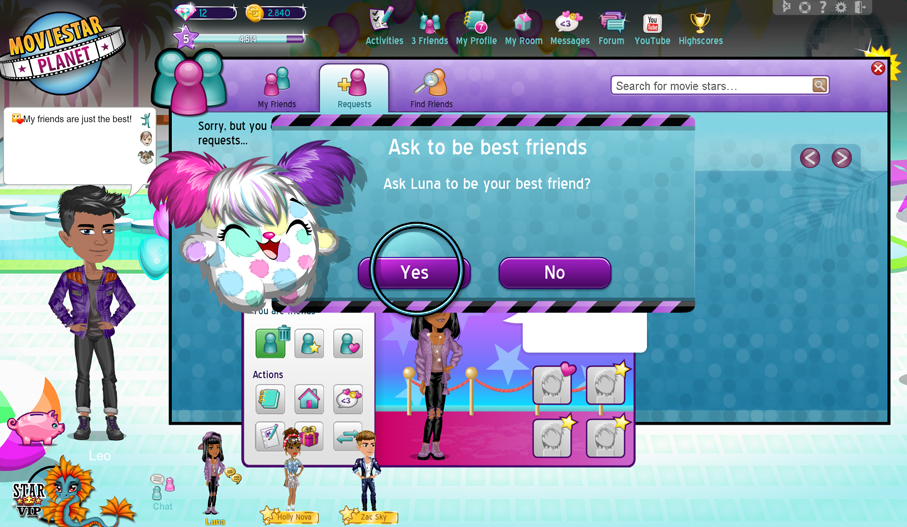 MovieStarPlanetissa on niin hauskaa, kun jaat hauskanpidon kavereiden kanssa! Tiesitkö, että voit tulla parhaaksi kaveriksi tai tyttö/poikakaveriksi heidän kanssaan, joista pidät eniten. Se on helppoa.
