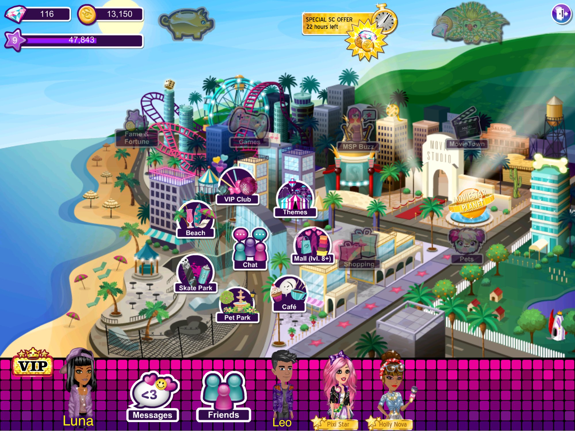 Om via de MovieStarPlanet app een chatroom in te gaan, klik je op ‘Chat’ en kies je hierna een Chatroom.