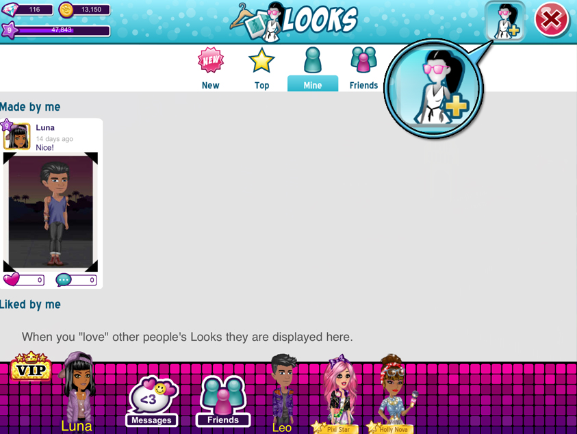 Når du har gjort et antrekk som du vil lagre eller dele (og fort finne det igjen) kan du bruke Looks funksjonen.