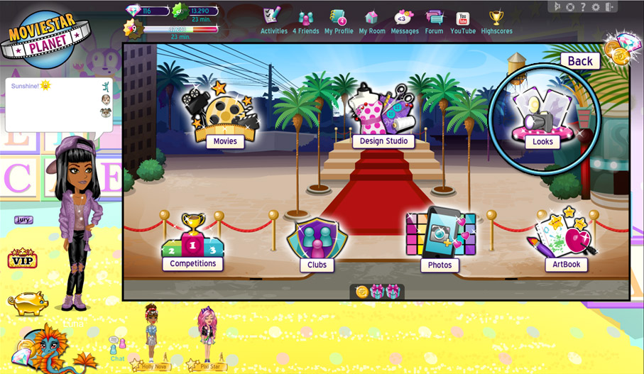 Du kan også lage, søke og "Love" Looks i MovieStarPlanet Appen. Du finner Looks i Filmbyen!