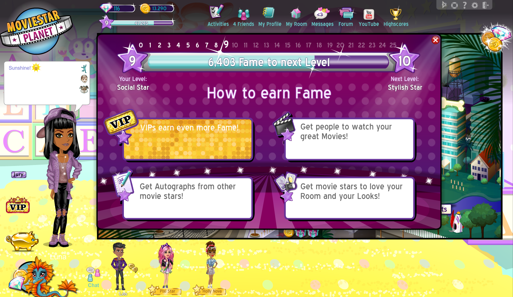 Det er mange måter å tjene Fame og levle opp. Du kan lage Filmer, dekorere ditt Rom, ta hand om ditt Kjæledyr, gi og få Autografer eller få "Love it" på dine Looks og Bilder. Spill spillet på ulike områder for å se hva som gir deg mest Fame.