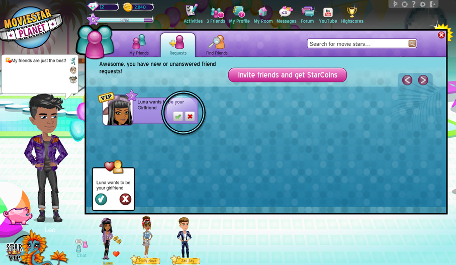 MovieStarPlanet är jättekul när du delar upplevelsen med vänner! Visste du om att du kan bli Bästa Vän och Pojkvän/Flickvän med dem som du gillar mest? Det är enkelt.